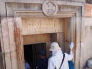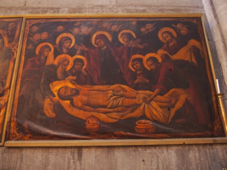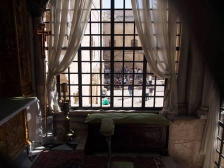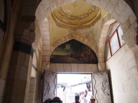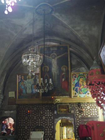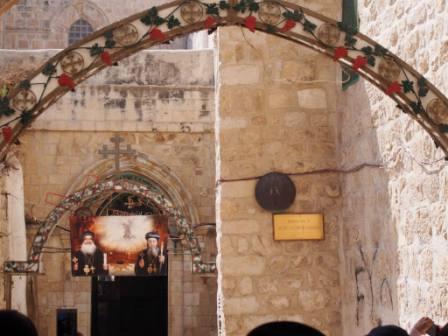 来た道を戻り再びハン・アルザイト通りを南下し,少し行った先を右折するとそこが聖墳墓教会である.この教会の入り口に第9ステーションがあり,イエスが3度目につまづいた場所とされる(これも聖書には記事のない伝承).ここはコプト教会の管理下にある. |