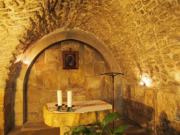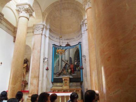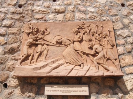 第1ステーションのすぐ西側,イエスが十字架を背負わされローマ兵によって鞭打たれたとされる場所である.今は鞭打ちの教会が立っている.内部は周辺よりも低くなっていて昔の床が残っている.