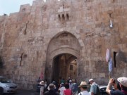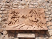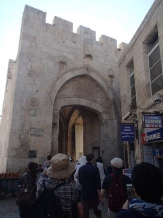 ヴィア・ドロローサ通りをさらに進みハン・アルザイト通りとの交差点に第7ステーションがあり,イエスが2度目につまづいたとされる場所である.1世紀当時エルサレム市街はここまでで,ここに市外への城門があったという.当時ここにイエスの罪状が掲げられたと考えられている.今でこそゴルゴダの丘とされる聖墳墓教会は旧市街内部にあるものの,穢れを極端に嫌うユダヤ教世界において市内に処刑場があったとは考えにくいからである. |