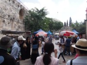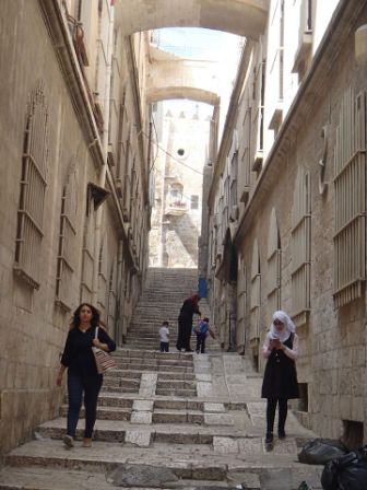 ハン・アルザイト通りに左折しすぐの道を右折,少し西に行ったところが第8ステーション,イエスがエルサレムの娘たちに語ったとされる場所である(ルカ23章).ここにもギリシャ正教の教会が建っていて,壁には十字架が描かれている. |