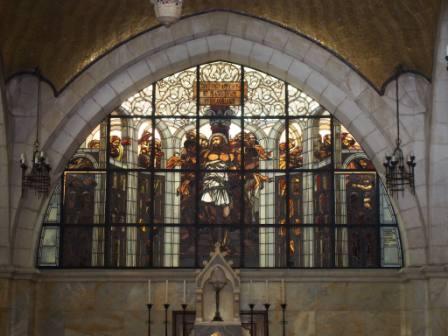その場面がステンドグラスに描かれています |