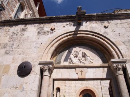ここから少し西に行ったところにエッケ・ホモ教会がある.これは「この人を見よ」の意でピラトがイエスをさして群衆にそう呼びかけた記事に由来する.ここには十字架が置かれていて,毎週金曜日の午後フランシスコ会の修道士がこの十字架を担いで実際にこのルートをたどるのだそう.第1&第2ステーションと,このエッケ・ホモ教会はかつてアントニオ要塞と呼ばれるローマ軍の駐屯地だったところらしい. |