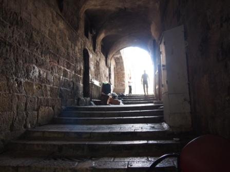 エッケ・ホモ教会から西に進み,エル・ワド通りにぶつかるT字路の曲がり角,イエスが最初につまずいたとされる場所である.ただしこのエピソードは聖書にはなく他の伝承による.ここと次の第4ステーションは1856年に建てられたアルメニア正教の教会敷地内にある. |
