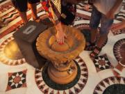 多くの巡礼者が触りすり減っています |