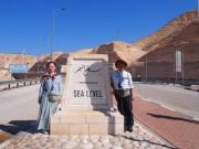 嘆きの壁でエルサレム観光は終了である.時刻は9時,ここからは帰国に向けて国境を越えヨルダンを目指すことになる.標高800メートルの小高い丘にあるエルサレムから国境のあるヨルダン川に向けて道はどんどん下っていく.途中に標高ゼロメートルスポットがあり,せっかくなのでここで休憩する.SEA LEVEL と書かれたこの看板,地中海と同じ高さなのだそうだが,坂道の途中,しかもさらにどんどん下っていく道が見えるので全くそういう感慨はわかない(笑).周囲はいかにもといった感じの典型的な砂漠が広がっている(日本人がイメージする砂漠ってこんな感じだろう).ここにも観光用のラクダがいたが,MERSが怖いので近寄らなかった.しばしの休憩の後,バスは再び走り出す.ゼロメートルポイントからさらにどんどん下っていく.酸素が濃い世界だ.試みに周囲を凹ませたペットボトルを用意していたら,下界に着いた際にはちゃんと膨らんでいた(笑).