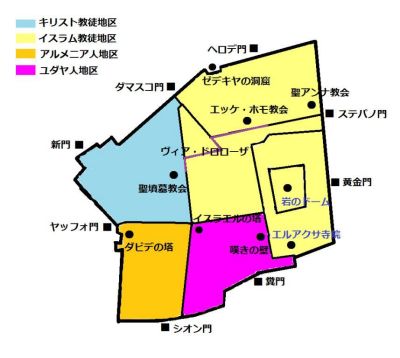 その後この地はローマ帝国の属州とされ,エルサレムも単なる一地方都市になった.しかし4世紀に入りキリスト教がローマ帝国に公認されると,にわかに聖地として注目されるようになる.今に続く聖墳墓教会の基礎ができたのもこの時代である.その後のビザンチン時代にはエルサレムはローマ,コンスタンティノポリス,アレキサンドリア,アンティオキヤとともに五大総主教座のひとつとされ多くの教会が建てられた.しかし6世紀になると東のササン朝ペルシャの攻勢が強まり,7世紀初頭にはついにエルサレムを含むイスラエルはペルシャに征服されてしまう.これに対してビザンチン皇帝ヘラクレイオスが自ら反撃し一時は奪回に成功するが,同世紀後半にイスラム教が急成長するとその勢力に飲み込まれてしまった.以後十字軍による一時的な回復はあったものの,基本的にイスラム諸王朝による支配下に入り近代に至った.イスラム教を開いたムハンマドがエルサレム神殿跡(遠隔の礼拝堂)から大天使に伴われて昇天したという伝承から,7世紀末から8世紀にかけて神殿の丘に岩のドームやアル・アクサー寺院が造られ,ここはまたイスラム教の聖地にもなった.