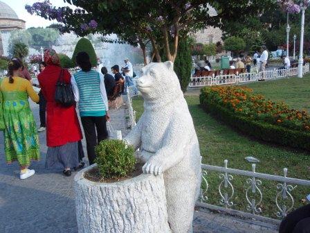 ローマ帝国の繁栄と退廃を象徴する言葉に「パンとサーカス」がある.古代ローマでは奴隷制と属州から流入する大量の穀物によって,首都に住む市民にはパンと見世物が無料で提供されていた(これは歴代ローマ皇帝の人気取り政策である.ローマ帝国では皇帝は市民の第一人者という建前があり,市民の支持が得られなければ皇帝の地位を維持できないこともあった).ローマの歴史を引き継いだ初期ビザンチン帝国にもこの伝統は残っていたが,この時代の市民の娯楽として大人気だったのが戦車競争である.今でいえばF-1などの自動車レースのようなもので,市民はそれぞれ贔屓のチームを熱狂的に応援していた.当時今のブルーモスクがあるあたりに皇帝の住む宮殿がありその西隣に,10万人の観客を収容できた巨大な競技場があったというわけである.6世紀にこの街を破壊したニカの乱もこの競技場での暴動が引き金となった.時代の推移と共に戦車競技は行われなくなり,やがてオスマントルコの時代には競技場そのものもなくなったが,土地だけはそのまま残り今はかつてのフィールド部分が公園となっているのである.現在ここはヒッポドロームと呼ばれているが,これはギリシャ語で馬の道を意味する.