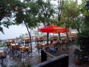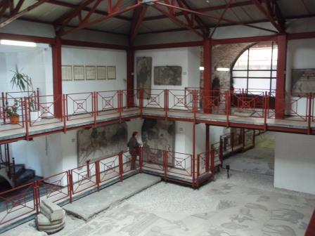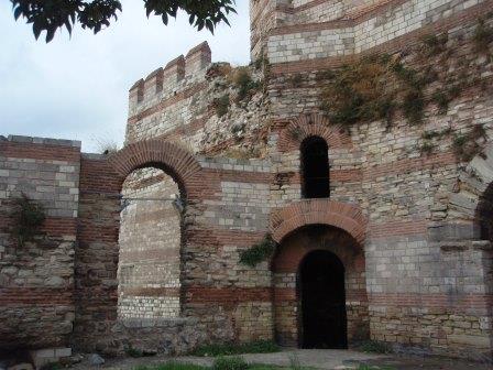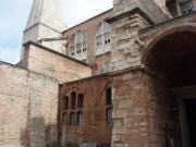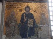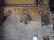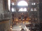 しばらくドームの1階を見学したのち,上のギャラリーに登ってみることにした.ギャラリーへの階段は薄暗くて無骨な石造り,特に近代的な改装も加えられておらず,中世の雰囲気を色濃く残している.ギャラリーは当時典礼の際皇族たちが参集した場所とされているが,今ではここは当時の美しいモザイク画がみられる場所として知られている.15世紀のメフメト2世による征服後,ここはモスクに改装されたわけであるが,彼らイスラム教徒はこれらのモザイクを(破壊ではなく)漆喰で塗り固める処置を行った.これが結果としてこれら貴重なモザイク画を現在に遺すことに役立ったわけである.我々もしばしこれらの素晴らしいモザイク画を鑑賞して過ごした. |