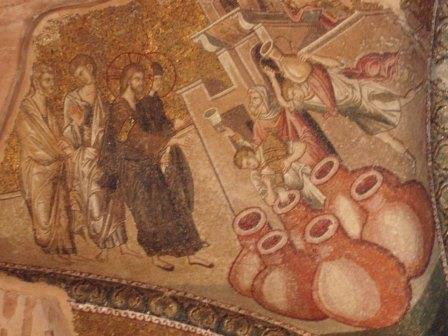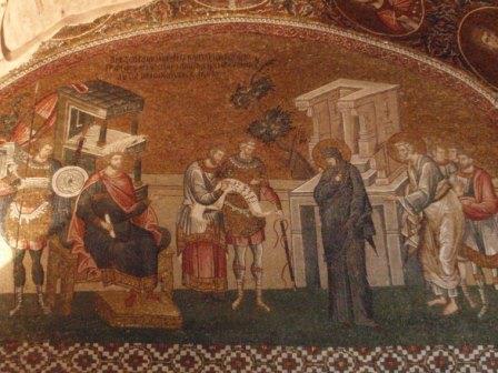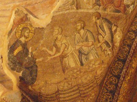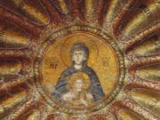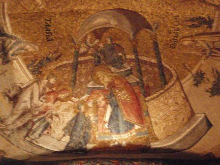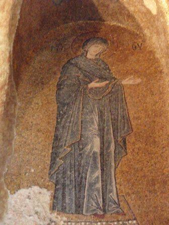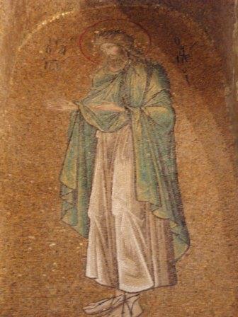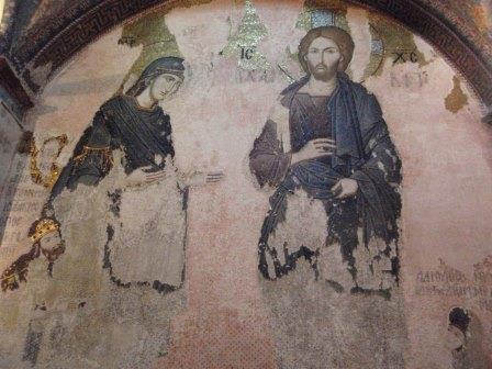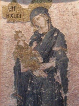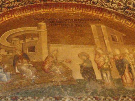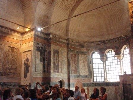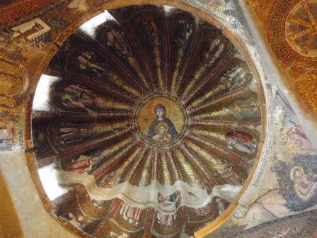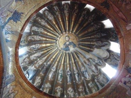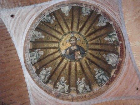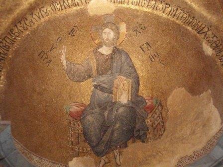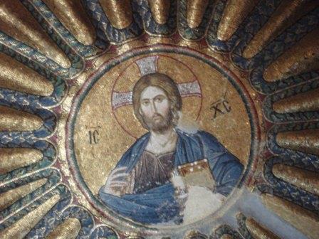 受付で入場料を払って中に入る.まず正面にあったのが「祝福を与えるイエス」,教科書にも出てくる非常に有名なモザイク画だ.いきなりこんな大物を目にして圧倒されてしまった.館内はまだ朝早いというのに大勢の観光客でごった返していたが,そのほとんどは欧米系の団体観光客で日本人の姿はほとんどなかった.思うにここは旧市街の外れにあり,一方で日本の団体観光はイスタンブールを2〜3日で終えるため,ここは省略されるのだろうなと感じた(モザイク画はアヤ・ソフィアで見学してお終いなのだろう).