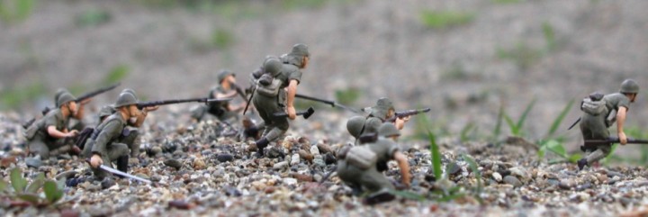 内地の部隊から順次切り替えていったため,外地に長くいた部隊の中にはずっと三八式のままというところもあったという).下の作品は3セットくらいを使っている.