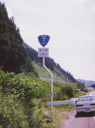 日本海側の幹線道路.新潟から山形の庄内地方,秋田を経て能代から内陸へ.大館から弘前,青森市へ至る.青森県庁前にはこの7号線と4号線の分岐を示す石がある. |