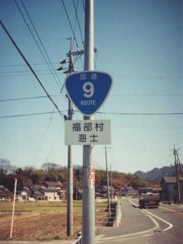 いわゆる山陰道.京都から福知山を経て兵庫と鳥取の県境付近で日本海に出る.その後鳥取,松江を経て益田から再び内陸へ.山口を通り小郡で2号線と合流する.その後関門トンネル付近で2号線と分かれて下関市内に至る路線である.JR山陰線とはかなり経路が異なる. |