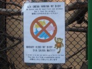 夜行性の原猿類を観察した後は,昼行性の原猿類の観察である.クロキツネザルをはじめとする原猿類がケージで展示されていたのだが,どうもこの動植物園で日本人研究者が勤務していたことがあったらしく,「動物にエサを与えないで下さい お腹をこわして死んでしまいます」という日本語表記もある注意書き看板が掲示されていた.やはりどこの世界にも,展示動物に食べ物を与えようとする奴はいるものだなあと思ったのであった.
