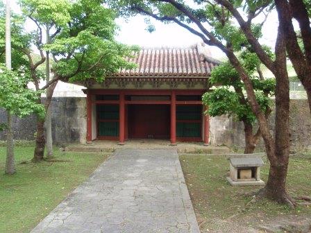 首里城の施設は全て東西方向を軸とした線上に置かれ,西側が正面となっている.そのため城郭の西側には綾門大通という大きな道が造られていたが,その東端にあるのが有名な守礼門である.