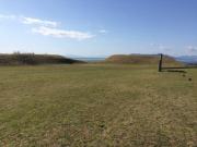 そんな志苔館があったのは今の函館市街地の東にある函館空港の南側,標高25メートルの海岸段丘の縁である.東西70〜80メートル,南北50〜65メートルのほぼひし形をしており,総面積は4100平方メートルである.周囲は1〜4メートルの土塁に囲まれ,さらにその北側と西側には幅5〜10メートル,深さ最大で3.5メートルの空堀が設けられている.内部には当時の井戸や建物の礎石などの遺構や,中国製の陶磁器や銅銭などの遺物が発見されている.
