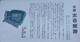 志苔館へのアクセス: JR函館駅から函館バス91系統にて35分,志海苔バス停下車すぐ.自動車の場合専用の駐車場はないので,遺跡北側にある志海苔ふれあい広場に駐車して徒歩数分です.