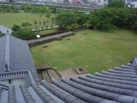 この御三階櫓はJR白河駅ホームからはもちろん,近くを走行する東北新幹線の車内からも見ることができる(新幹線の東側になるのでA,席が一番見やすい).