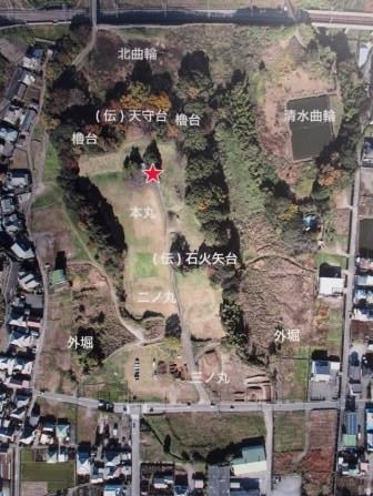 三ノ丸(真ん中の道路が旧根方街道) |