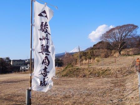 興国寺城跡に立つ幟と富士山 |