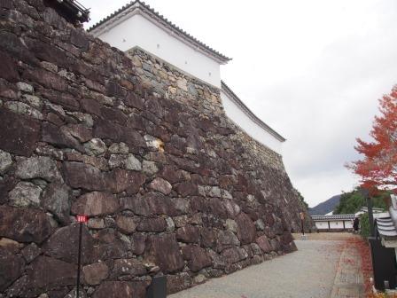前述のように京都に近い重要な場所ということで,豊臣秀吉の時代とそれに続く江戸時代初期は城主が次々に交代し統治が安定しなかったが,寛文九年(1669年)に朽木植昌が3万2千石で入り,以後明治維新まで朽木家がこの地を支配した.明治維新後は廃城となり多くの建物も破却されたほか,二ノ丸の台地は削られてしまった.現在遺構として整備されているのは本丸部分のみで,現存する建物としては元々二ノ丸にあった銅門番所が本丸に移築されて残っている.明治期に破却された大小天守は昭和61年に外観復元された.石垣は光秀の時代のものから江戸時代のものまで様々だが,古い時代のものは基本的に野面積みであり,さらに転用石(元は石仏や五輪塔などだった石)が多数使用されているのも特徴である.