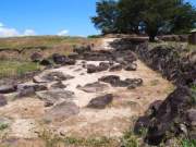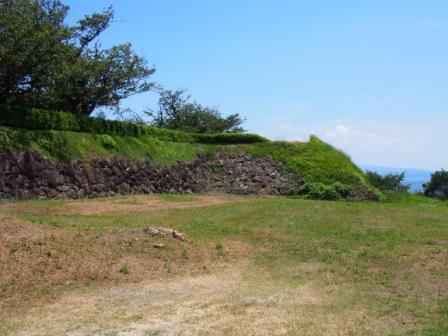 島原城は4万石の大名の城郭としては明らかに過大であり,松倉氏の島原藩は初期から財政難に陥った.結果領民に重税をかけるなど苛政に走り,また有馬時代から当地に多くいたキリスト教徒に対する激しい弾圧もあり領民の不満が急速に高まった.その結果起こったのが寛永十四年(1637年)の島原の乱である.一揆軍は当初島原城を攻撃したが,過大な城郭が幸いしたのか落城には至らなかった.幕府による鎮圧軍も迫ってきたこともあり一揆軍3万7千人が籠城したのが原城である.有馬氏時代の支城とはいえ,3方向を海に囲まれた要害の城であり,また場内に水源もあったことから幕府軍も攻めあぐね(当初鎮圧軍の上使として派遣された板倉重昌が討ち死にしている),結局兵糧攻めの上鎮圧に成功したのは約3か月後の翌寛永十五年の春のことである.この乱が幕府に与えた衝撃は大きく,一揆軍は皆殺しにされたほか,乱の原因を作った松倉勝家(松倉重政の子)はその責任を問われ斬首となった(大名が切腹ではなく斬首された例は江戸時代を通じてこの1例だけであり,いかに幕府が危機感を抱いたかがわかる).原城は再び反乱の拠点とならないよう徹底的に破壊された. |