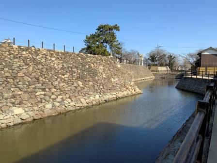 向かって右側が黒田氏、左が細川氏の石垣 |