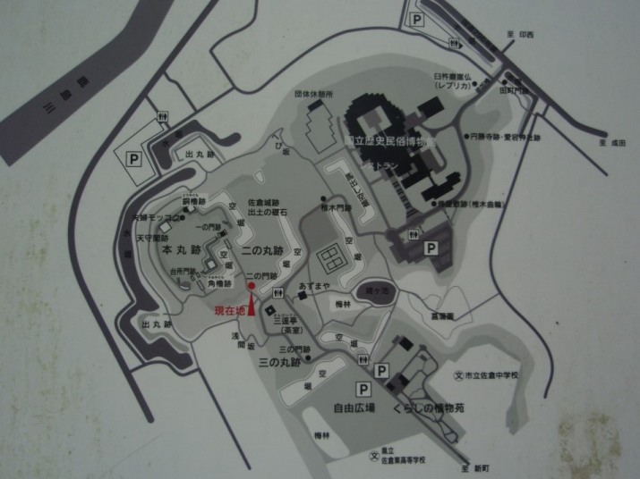 スタンプの設置場所 園内には歴史民俗博物館という立派な建物がありますが,スタンプの場所はここではなく,公園のはずれ佐倉中学校・佐倉東高校そばにある佐倉城址公園管理センターという地味な建物に置いてあります.