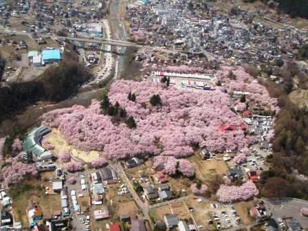 上空から見た高遠城跡,桜がジャイアントカプリコのよう