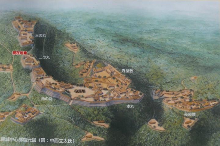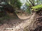 登城のハード指数(★★★ かなりハードです) 登山道はよく整備されていますが30分以上の登山となり健脚向きです(ただし車の場合は本丸近くに駐車場があるのでそれほどでは歩く必 要はありません.ですがこの城郭の雰囲気を堪能するためにも資料館から歩くことをお勧めします).