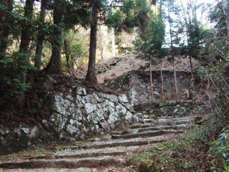 江戸時代には岩村藩2万石(後に3万石)の城となり,明治維新後に廃城とされた.この時城の建物は破却されてしまったが,石垣や井戸などの遺構が現在までよく保存されているのだった.麓の歴史資料館から登り始める.山城ではあるが,登山道はきちんと石畳で整備されて |