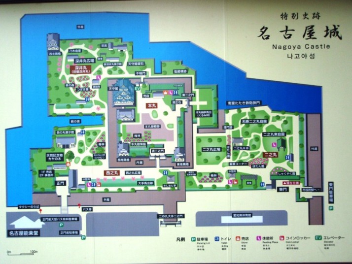 現在名古屋城の遺構として残されているのは3つの櫓(西北隅櫓,西南隅櫓,東南隅櫓)といくつかの門,石垣,堀などである.その一方再建も行われており,昭和
