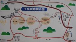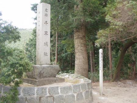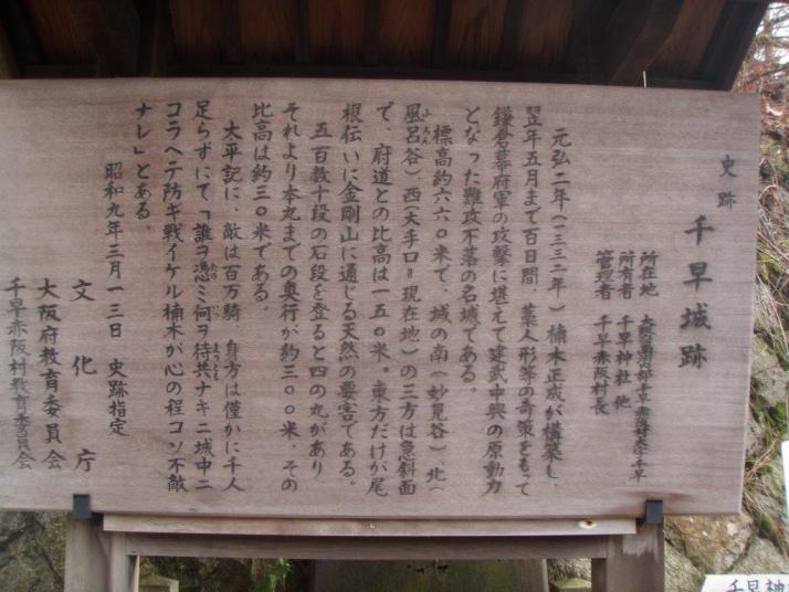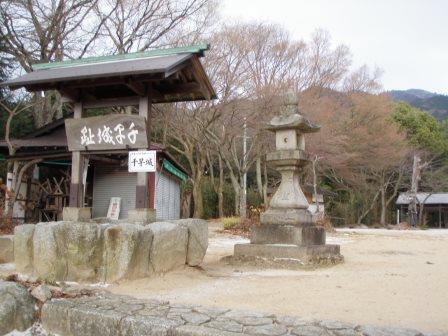 千早城へのアクセス: 南海電鉄高野線河内長野駅から金剛山ロープウェイ行きバスで30分(時刻表),金剛登山口バス停下車後,徒歩40分で二ノ丸跡の社殿です.