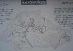 竹田城は典型的な山城で,標高353.7メートルの虎臥山の山頂に天守台が置かれ,その周辺に放射状に南千畳,北千畳,花屋敷が配置されている.特に石垣の壮麗さで知られ,天守台から見た南千畳の光景は南米ペルーにあるインカ帝国の遺跡であるマチュピチュを髣髴させるため,日本のマチュピチュなどと呼んでいる人もいる(逆にマチュピチュがペルーの竹田城と呼ばれているのかは不明 笑).またこの地は霧が発生しやすいことでも知られ,特に秋から冬にかけての早朝には雲海に浮かぶ竹田城の姿を見る事ができ,その光景から天空の城という異名もある.