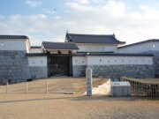 そんな赤穂城,中心に本丸,それを二ノ丸が同心円状に取り囲み,その二ノ丸の北に三ノ丸が隣接する縄張りになっている.平地に造られた典型的な平城だが,一方で山鹿流の甲州軍学を採用した城として知られ,それがために複雑に入り組んだ石垣など実戦を強く意識した構造になっている.赤穂城が実戦に使われることはなかったものの,例の元禄事件で幕府から城明け渡しの指示が来た際,場内では籠城して戦おうという意見もあり,もしこの案が採用されていたら山鹿流城郭の力が示されたかもしれない.尚,本丸には大きな天守台が築かれているが,実際にここに天守が置かれたことはなかった