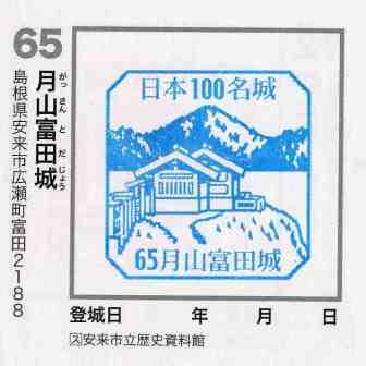 月山富田城へのアクセス: JR安来駅からイエローバス広瀬−米子線,広瀬バスターミナル行きで20分市立病院下車(200円),そこから徒歩10分川の反対側に歴史資料館があります.またイエローバスは米子駅からも出ているので,米子から直接バスで行くことも可能です(イエローバス時刻表).