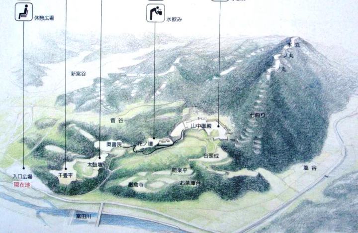 登城のハード指数(★★☆ ややハードです) 山中御殿までの道は大したことがありませんが,その後の七曲りは結構きついです.