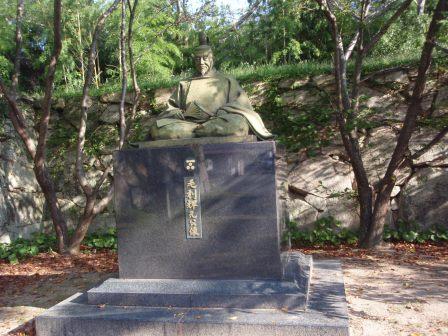 城内に立つ毛利輝元(長州藩祖)の像 |