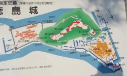徳島城へのアクセス: JR徳島駅から徒歩10分程度(距離的には駅のすぐ北ですが,徳島駅の出口が南側にしかないため,迂回する必要がある).