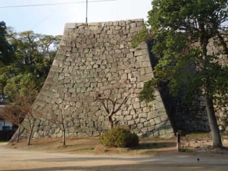 丸亀城は北側に大手,南が搦手になっていて,真正面の大手一の門,二の門は国の重要文化財に指定されている.ここから三の丸に向かって長い坂道が続く.ここが見返り坂と呼ばれる道で,ここをひたすらに登っていくと,ようやく三の丸に到着である.ここからさらに一段高いところに二の丸,本丸があり天守が聳えている.