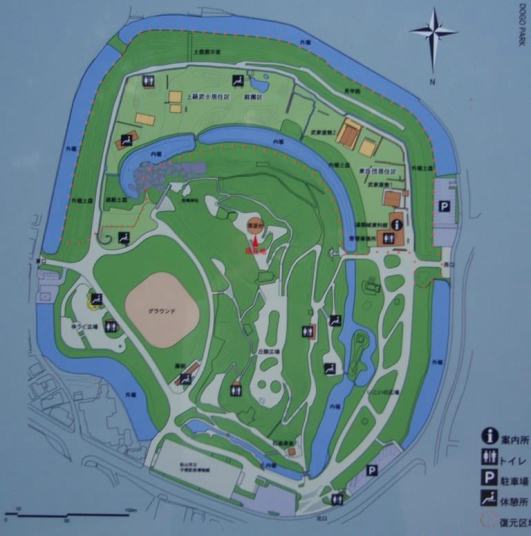 登城のハード指数(★☆☆ ハードではありません) 普通の公園です.丘に登るのもさほどの労力を要しません.