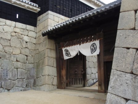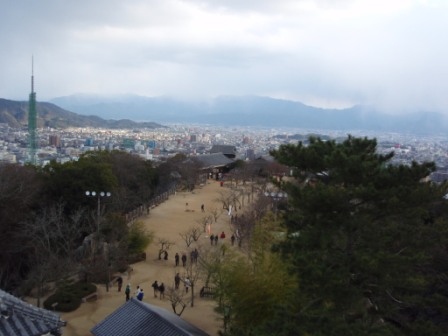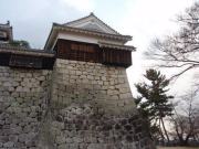 そんな松山藩の中心が松山城である.市内の標高132メートルの勝山山頂に本丸を,山麓に二ノ丸,さらにその下に三ノ丸が置かれた連郭式平山城である.山頂に築かれた本丸は南北に細長い形をしているが,その北端部に本丸本壇と呼ばれる曲輪があり,ここに大小天守と南隅櫓,北隅櫓からなる連立式天守が置かれている.松山城の天守は初期の加藤氏の時代には五層であったものが,後の松平氏の時代に三層に改築された(幕府に遠慮したためという).江戸中期の天明4年(1784年)に落雷で天守を含む本壇の建物は焼失したものの,幕末の嘉永年間に再建され現在に至っている.一方本壇を除く本丸部分にも各種門や櫓などの国の重要文化財がたくさん |
