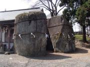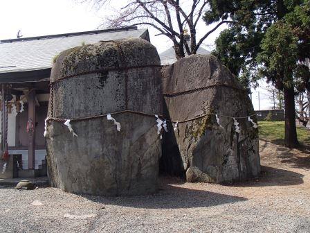 三ツ石神社にある大岩に関しては,”昔羅刹という名の鬼がこの地にいて悪行を重ねていた.人々が三ツ石の神に祈ったところ,鬼は捕えられ大きな岩に縛り付けられた.たまりかねた鬼がもう悪さはしない,ここには来ないと約束して逃がされた.この時に約束の証として鬼の手形が押された岩がこの神社にあり,それが岩手という名前の由来とされる” という伝承になっている.