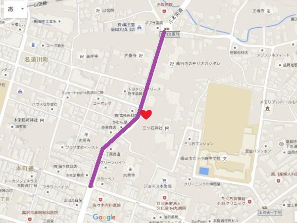 通りとしては400メートルほどと短い区間だが,周辺には国の天然記念物に指定されている龍谷寺のしだれ桜や,岩手という県名の由来となった鬼の手形がある三ツ石神社などの名所がある.
