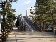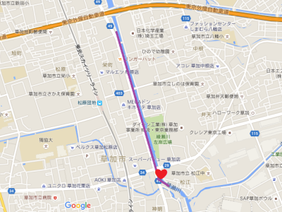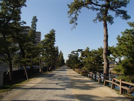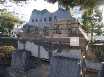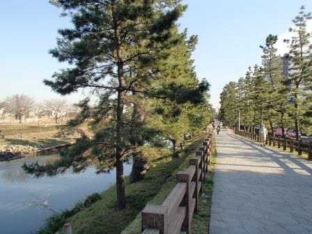 草加市内の日光街道のなかで日本の道100選に指定されているのは東武伊勢崎線草加駅から北10分ほど歩いた,札場河岸公園から東京外環道と交差する付近までの1.5キロ区間である.江戸時代,この付近の街道筋にはたくさんの松の木が植えられ,草加松原と呼ばれていた(一説では江戸時代後期の天保年間に植えられ,最盛期には800本以上になったとも).第二次世界大戦後モータリゼーションの発達によって街道をたくさんの自動車が通るようになると,その排ガスによってたくさんの樹が枯死してしまった.しかし地元の人々の熱意によって,車道が西側に移され,再び植樹が行われた結果,今では爽やかな遊歩道としてよみがえり,市民の憩いの場となっている.私が訪問した2014年3月22日は雲一つない晴天で,青々とした松並木を歩いていると,往時の旅人の気分に浸れるのであった.