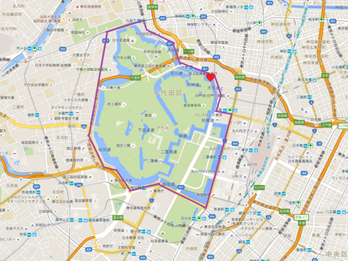 皇居の西側(国会議事堂が見えます)