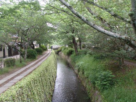 私が訪問したのは2014年5月12日,ちょうど京都での学会のついでである.北の慈照寺(銀閣)を拝観したあと,この道を南に向かって散策してみた.近年は沿道の喫茶店が廃業した後に住み着いたらしい猫も話題になっているとのことだったが,たしかにそれらしい猫の姿も見受けられた.