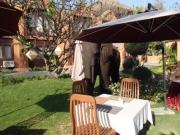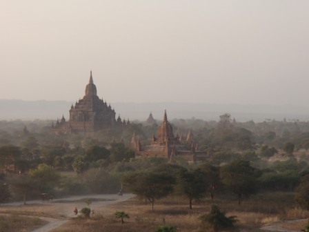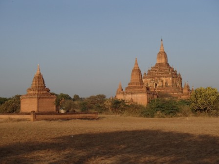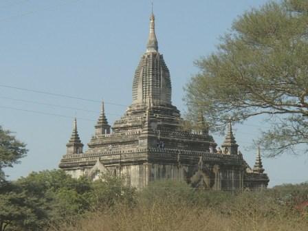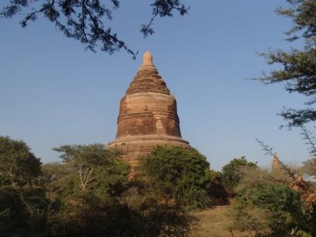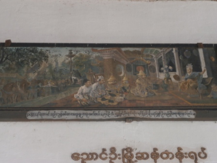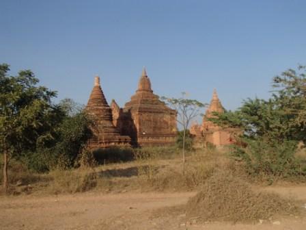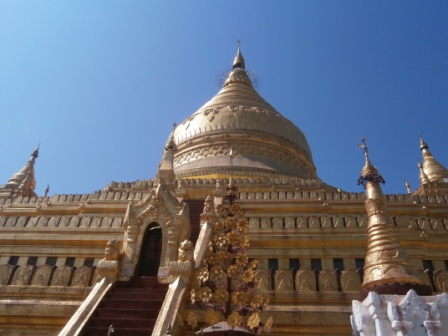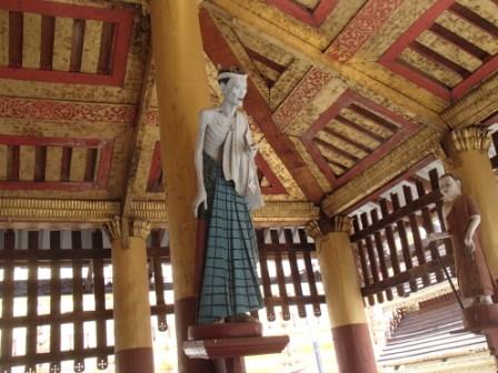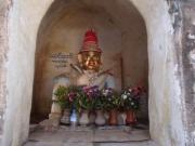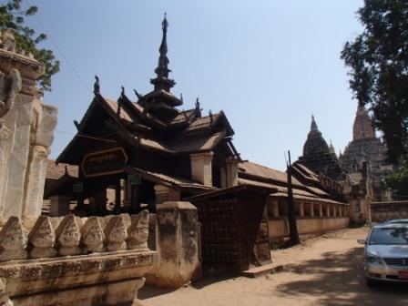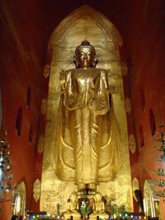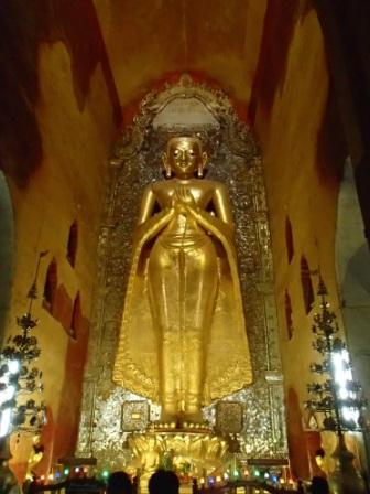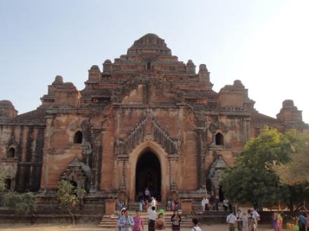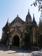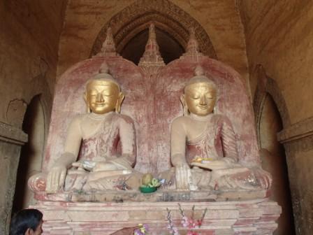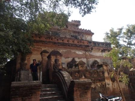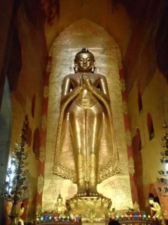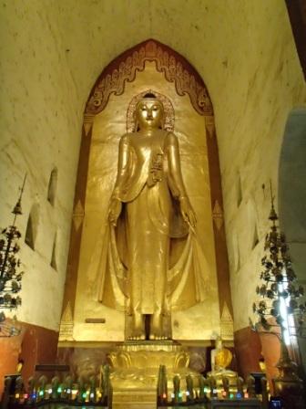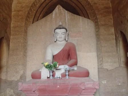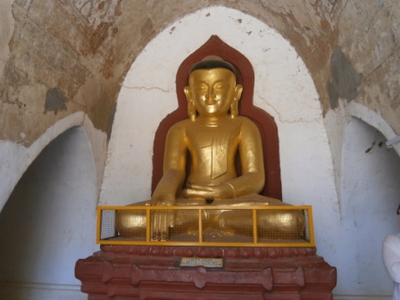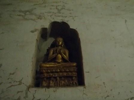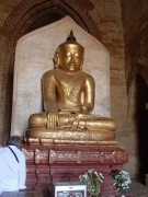 馬車に揺られてしばらく行くとダマヤンヂー寺院に到着,ここは12世紀のナラトゥ王によって建造がはじめられた寺院だ.彼は自分が王になるために父王および兄王子を暗殺したが,その後罪の意識にさいなまれてこの寺院の建造を始めたそうだ.だが後にその彼自身も暗殺されてしまい,結局この寺院は未完成のまま放置されて現在に至っている.確かにこの寺院は今まで見てきたものとは趣を異にし,壁などは荒れはてていているうえに,天井にはコウモリが飛び交うなど不気味な雰囲気を醸し出していた.しかしながらここにも壁画や金色の仏像はちゃんとあって,やっぱり寺院なんだなと感じさせられた. |