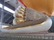 11時ごろにバゴーの町に到着した.ここはかつてペグーと呼ばれていた古い町で13〜16世紀にモン族の都として大いに栄えたところである.一昨日観光したバガンやミャンマー中部の都市マンダレーと同様多くの仏教遺跡があることで有名だ.まずはこの街のランドマーク,シュエモードーパゴダに向かう.このパゴダは1200年以上の歴史を誇るといわれており,過去何度も地震の被害にあったもののその都度再建が行われ,現在その高さは114メートルとミャンマー最大を誇っている(ヤンゴンのシュエダゴンパゴダよりも高い).実際にここには過去の地震で倒壊したパゴダの先頭部分が保存展示されていた(こういうのを見るにつけ昨日のチャイティーヨパゴダが落ちないのが凄いと感じる).