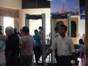 いつものようにサンダルを脱いで受付を済ませてから向かう先は… なんとエレベーター! このシュエダゴンパゴダは丘の上にあるため,誰でも簡単に行けるようにとエレベーターが設置されているのだった(大阪城状態