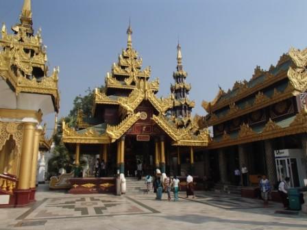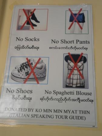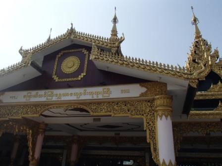 まず最初に向かうのはシュエダゴンパゴダ,ヤンゴンを代表するパゴダである.高さは99.4メートルということで,昨日見たバガンのシュエモードーパゴダよりは小さいが,元々シングッダヤという小高い丘の上に立っているために,市街地からの高さはこちらの方がありそうだ.このパゴダは東西南北に入り口があるのだが,この日は南の入り口から入った.